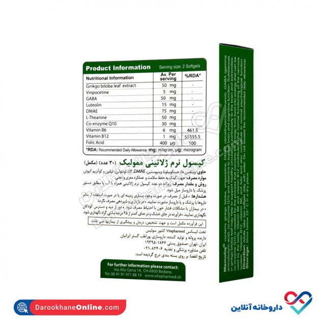 *ممولیک،حاوی عصاره برگ جینکوییلوبا،وینیوستین،DMAE،گایا،